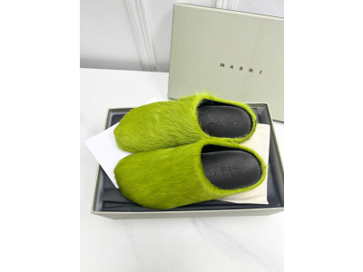 MARNI Green Pony Skin Fussbett Sabot Loafers